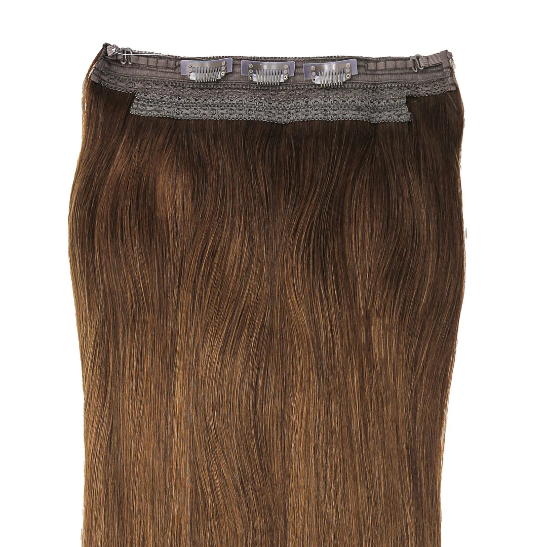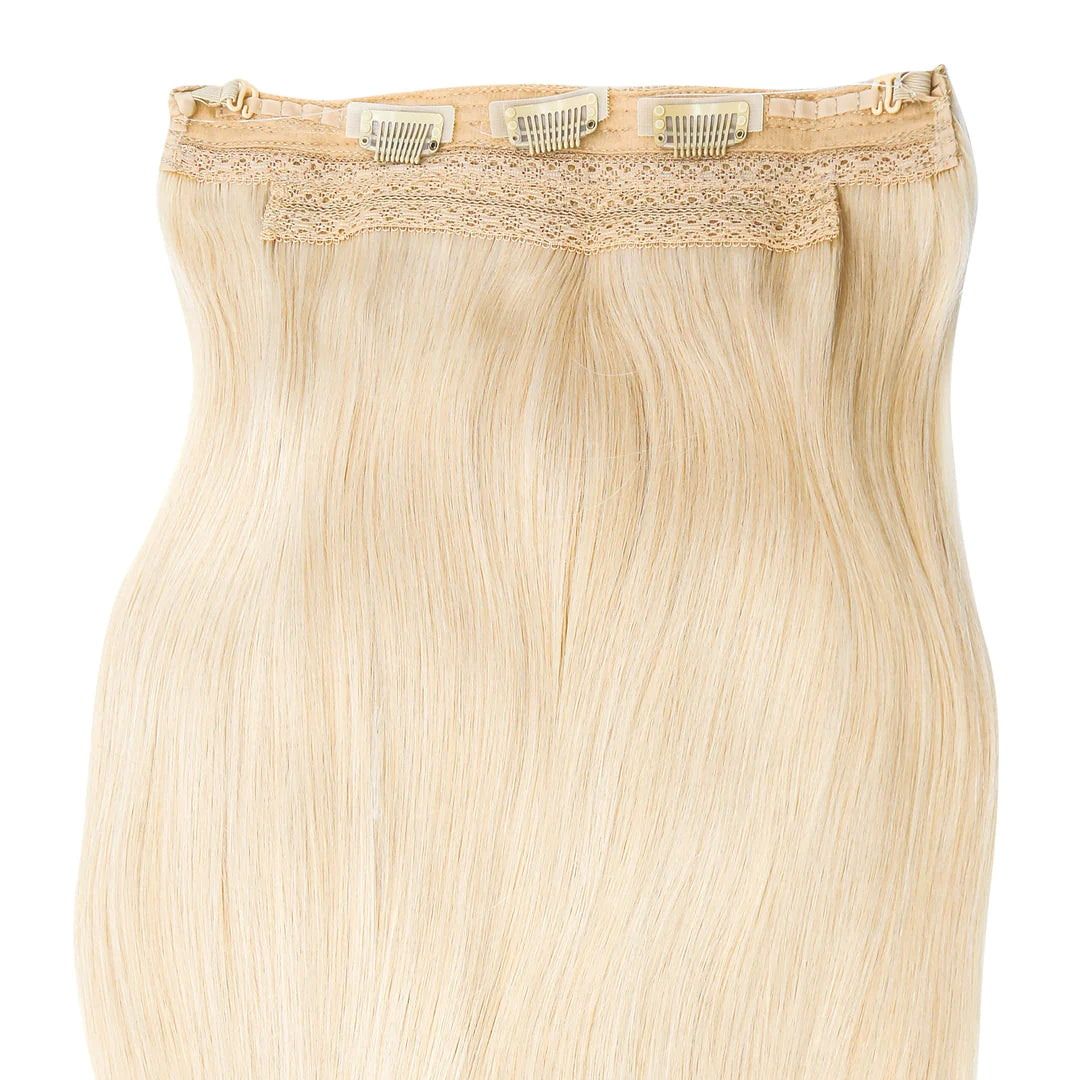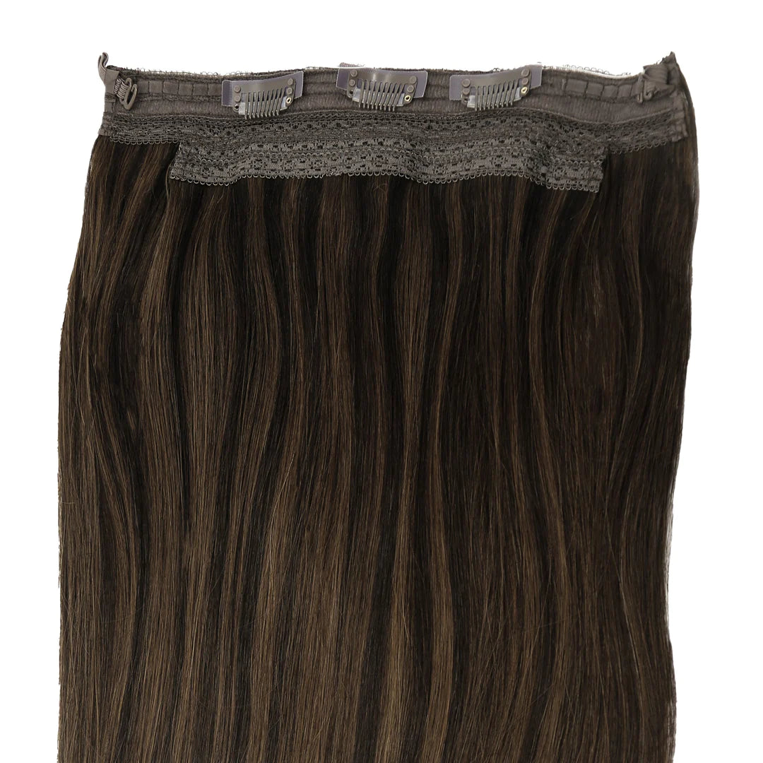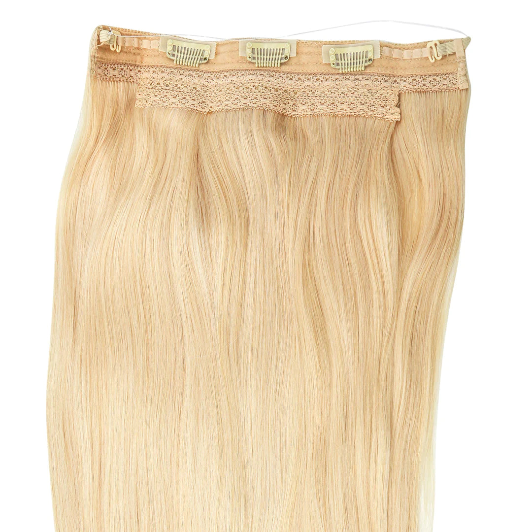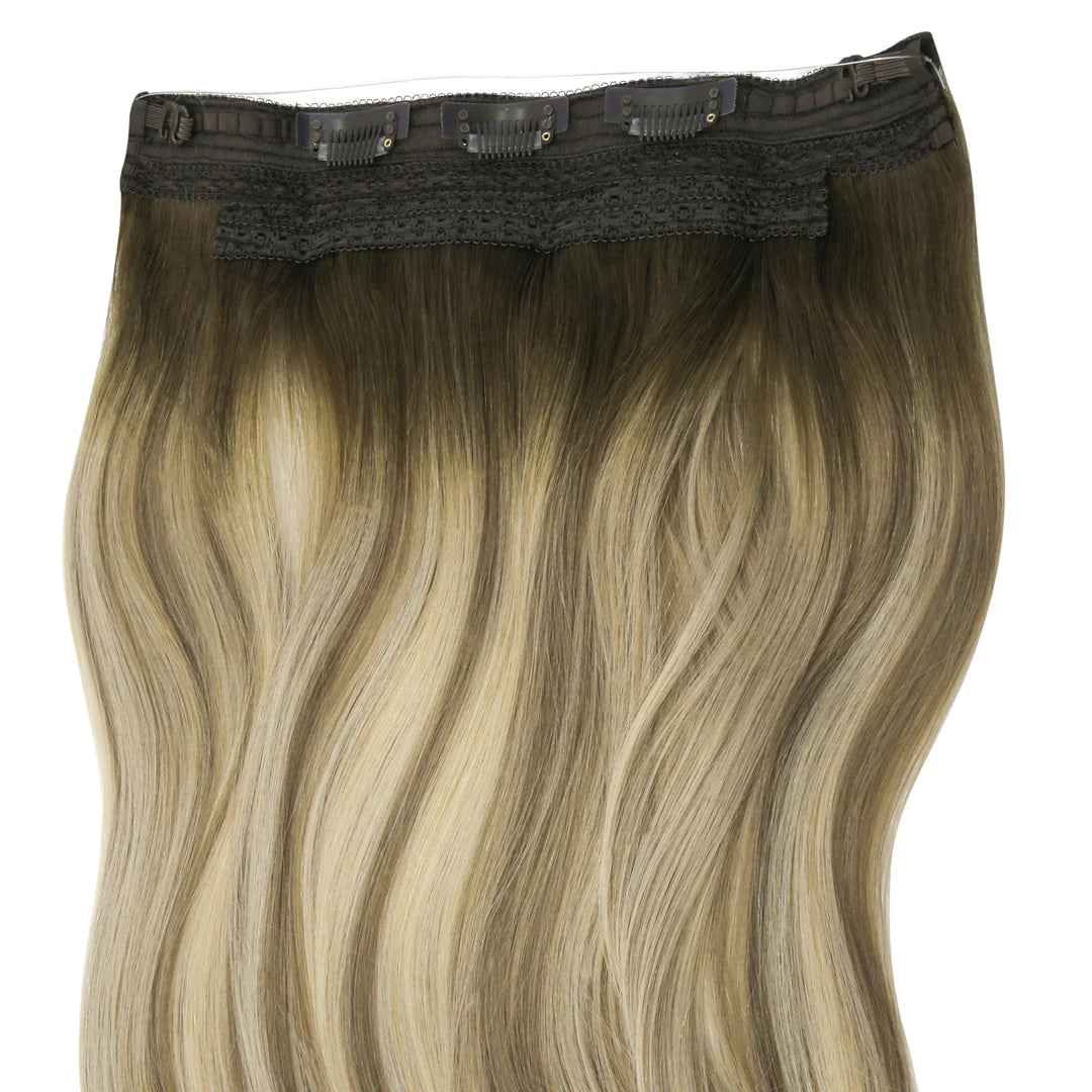 AquaLyna's "Aura" stands as a pinnacle in hair extensions, meticulously crafted from 100% human Remy hair for an unmatched natural look and feel. Designed with absolute comfort in mind, "Aura" offers effortless fitting, application, and removal, ensuring a seamless addition to your hair routine. Instantly achieving captivating length and volume without damaging your hair, this extension boasts various invisible wire options, to fit your crown perfectly. What sets "Aura" apart is its detachable velcro clips, providing extra stability to prevent any slippage, ensuring a secure and confident wear all day long.